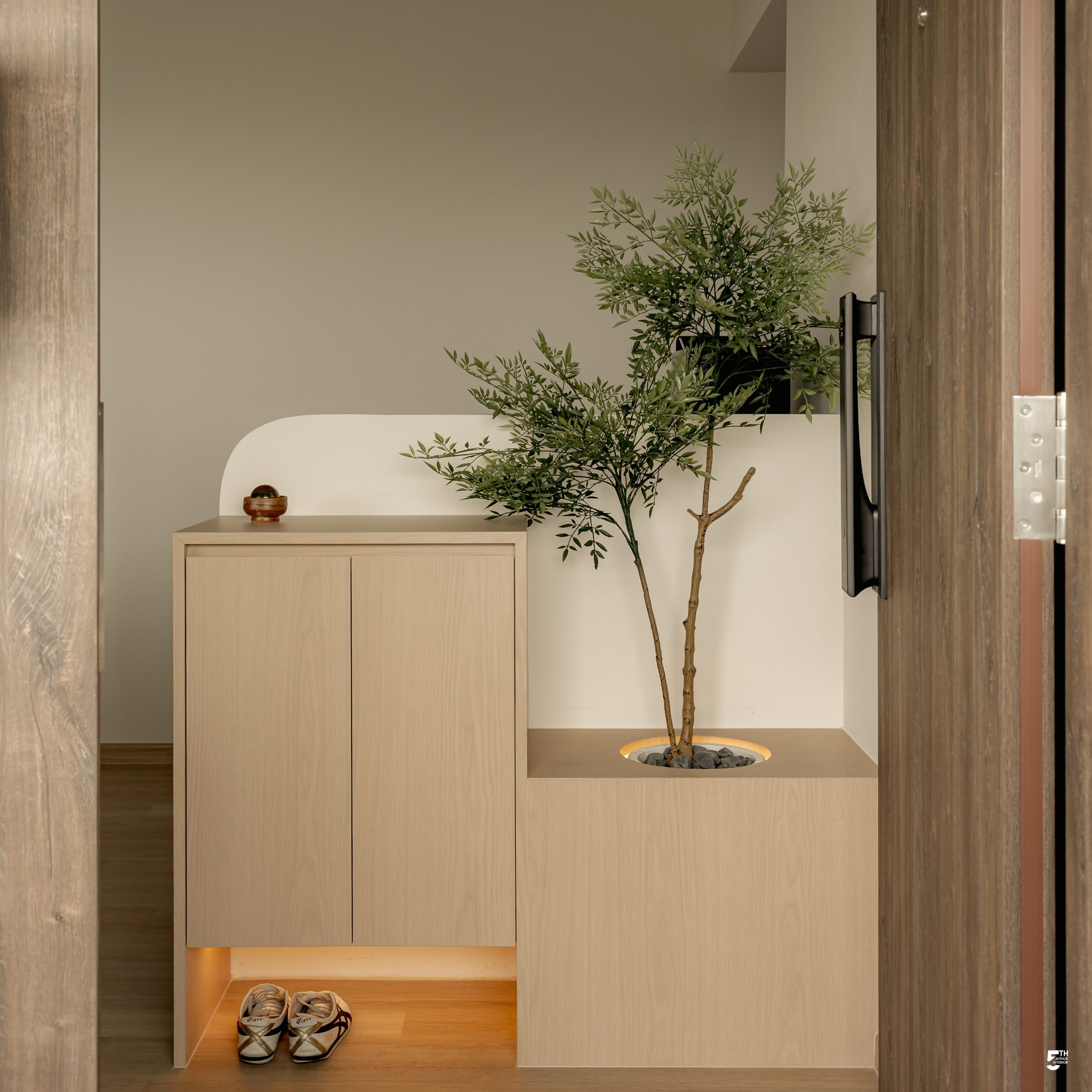 The calming restraint of Japandi, flows around this 4-room Resale HDB, creating a soothing and balanced ambience that helps homeowners unwind after a long day. The room layout was redesigned to align with personal preferences, while keeping both openness and privacy. The living area embraces an open design that welcomes natural brightness to breathe in while boosting the vitality from greenery. There’s even a customized planter box integrated with the shoe rack that serves as both a functional feature, doubling as a casual settee that adds character to the entryway.